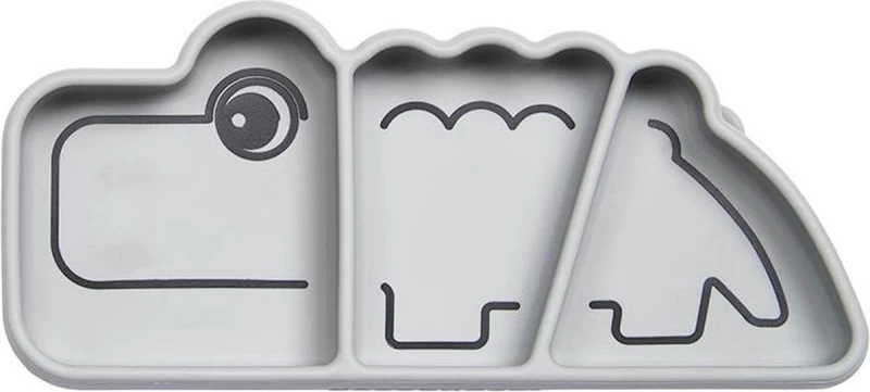 Appuyez sur l’assiette pour qu’elle adhère à la surface lisse de la table, cela empêchera l’enfant de la pousser, de la faire basculer ou de la lancer. Un volet à dégagement facile est caché sous la queue de Croco.