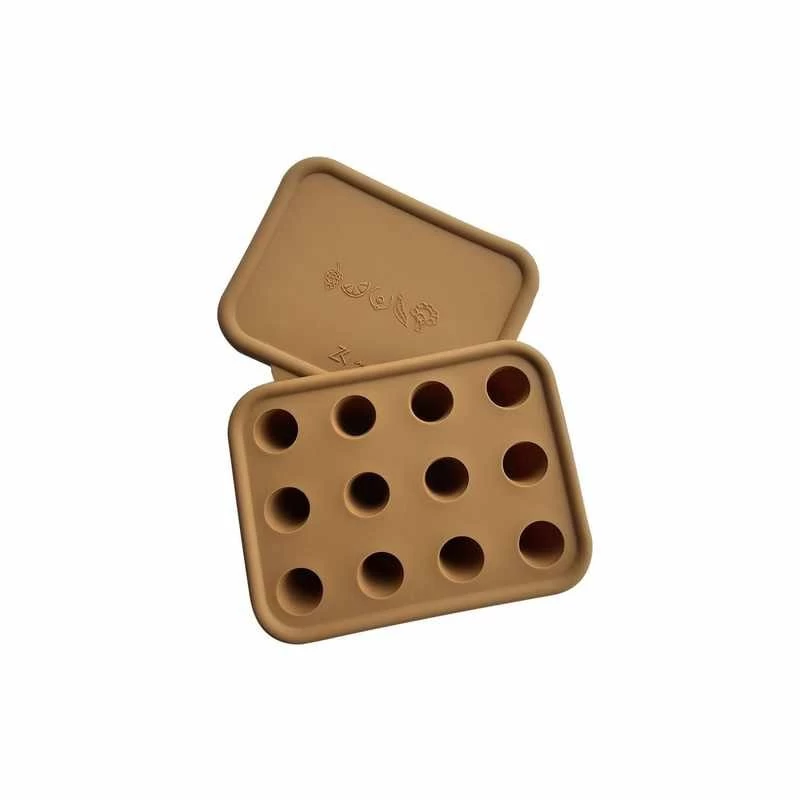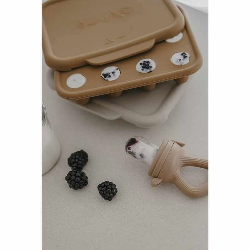 Un bac en silicone permettant de réaliser des glaçons adaptés à nos tétines grignoteuses pour congeler du lait maternel, des smoothies, purée de fruits ou légumes… pour soulager bébé lors des poussées dentaires.