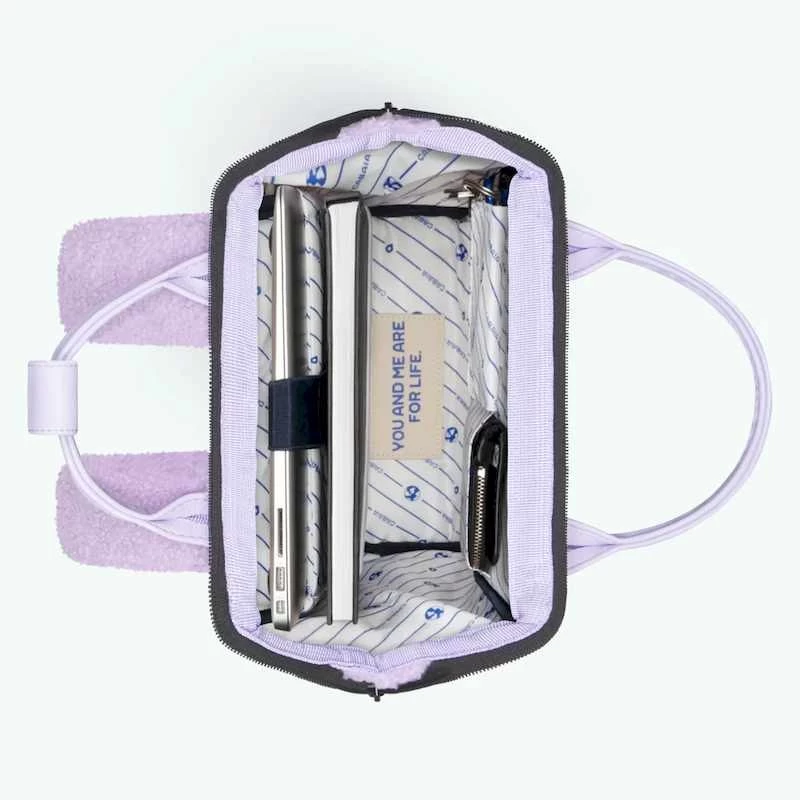 Ce sac est accompagné de 2 poches interchangeables : unie violet clair (Cleveland) et violet (Hong Kong)