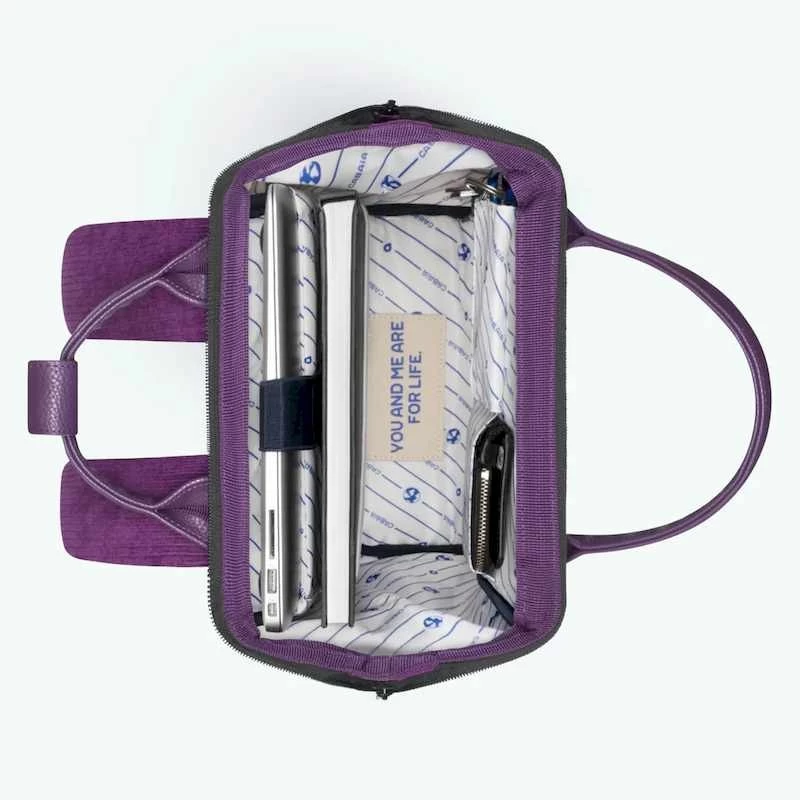 Ce sac est accompagné de 2 poches interchangeables : unie violet (Nancy) et noire (Stockholm)