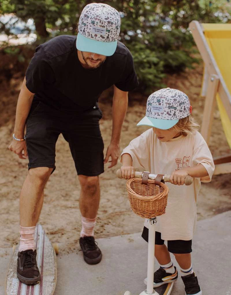 Alors, voici la rockstar des rockstars. La Casquette Jungly est le bestseller. C’est la casquette à avoir pour vos kids. Disponible en 3 tailles, et aussi pour les Papas, c’est le mix parfait à porter. Colorée, de caractère, avec un imprimé méga-cool, il ne faut pas la louper ! Soyez vifs 😉