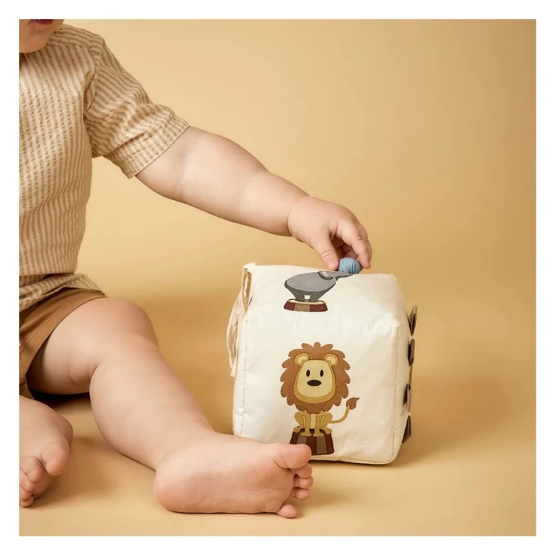 Le cube permet de stimuler les sens de votre enfant tout en jouant. Il pourra explorer les 6 faces de ce cube avec ses détails et ses structures. Le papier crépitant émettant un son net au toucher ne manquera pas d’aiguiser la curiosité du bébé.