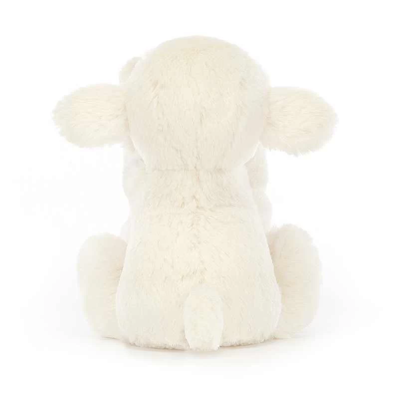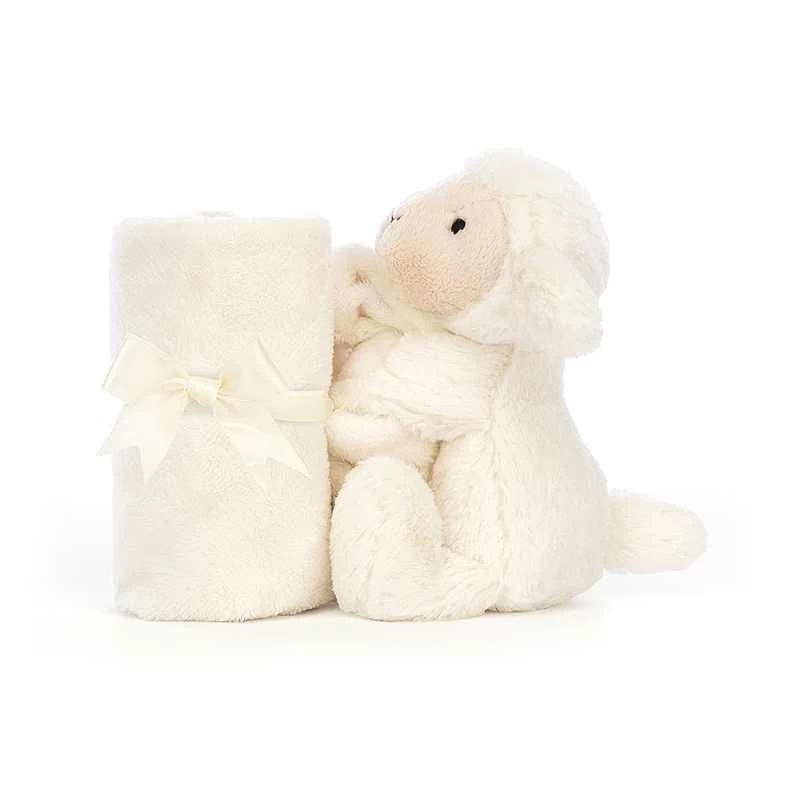 « Bashful Lamb Soother » de Jellycat est un doudou câlin et réconfortant, parfait pour accompagner les tout-petits dans leurs moments de tendresse.