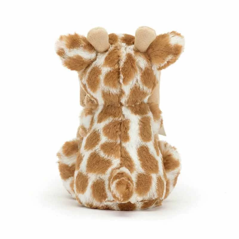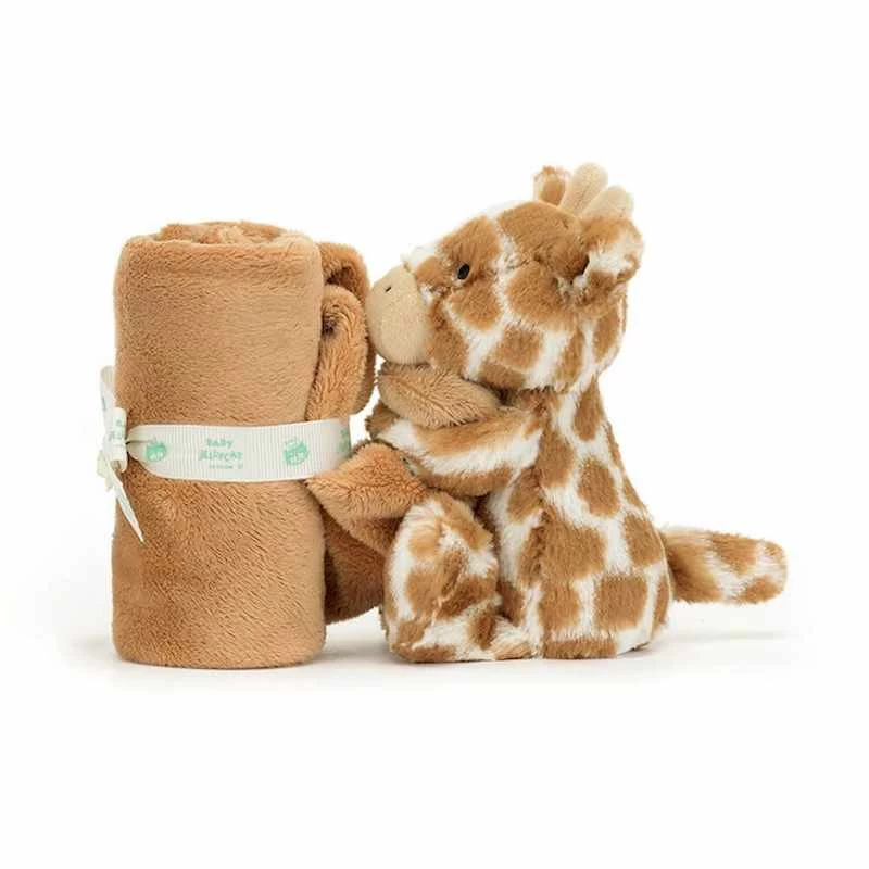 Offrez à votre enfant un compagnon de douceur avec la peluche girafe « Bashful Giraffe Soother » de Jellycat.