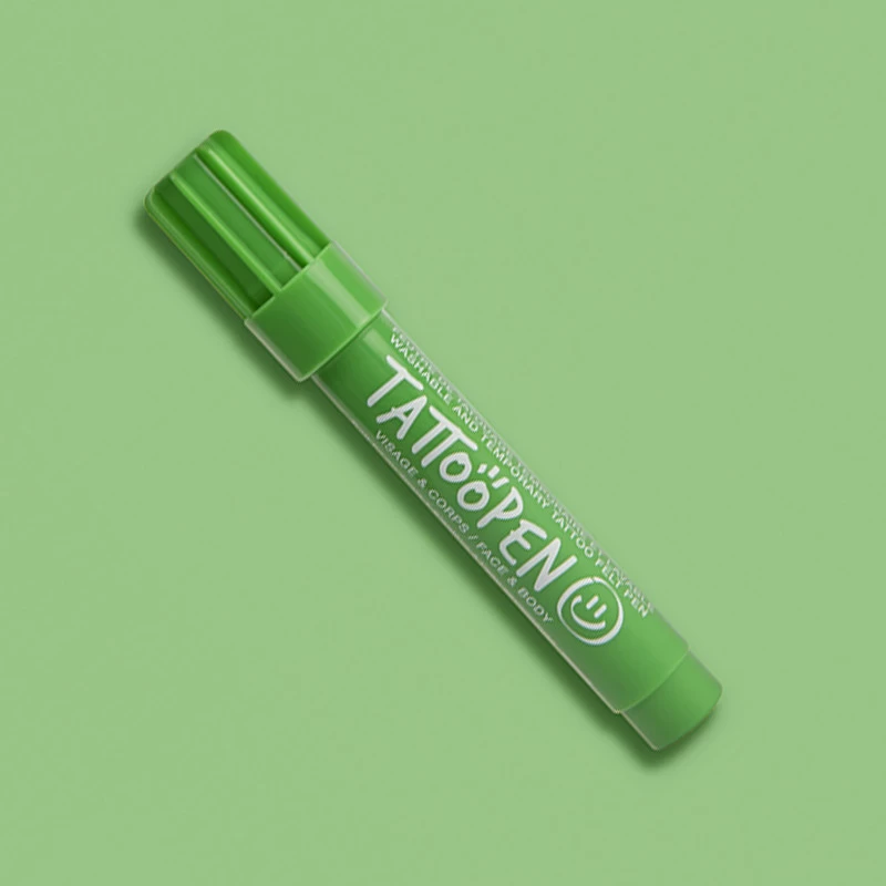 Feutre de tatouage temporaire vert pour visage et corps.