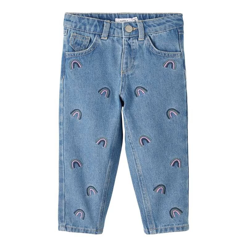 Jean mom fit (coupe ample) avec taille ajustable – Détail de broderie –