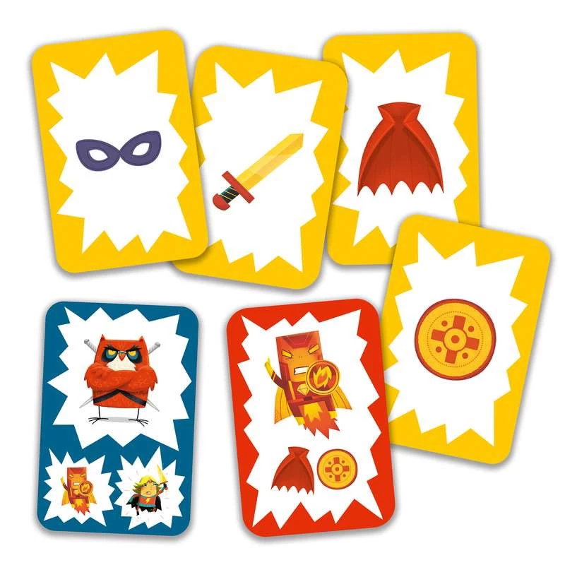 Un jeu de coopération et de mémoire qui se déroule dans un univers de Super-Héros. La ville est attaquée par des Super-Méchants !