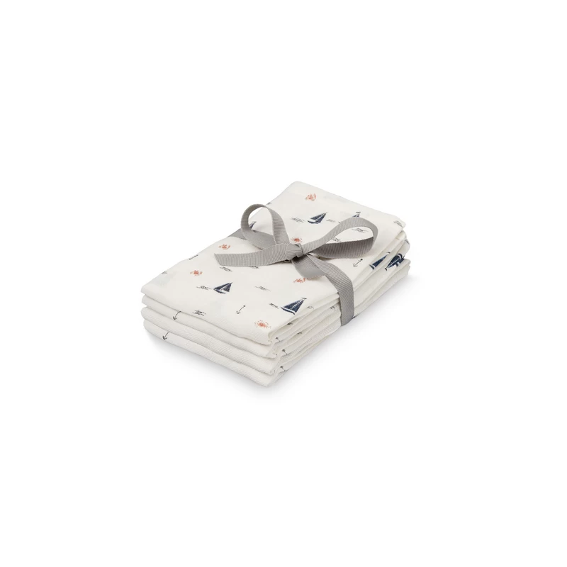 Langes Mousseline « GOTS Sailboats » CAM CAM (lot De 4)