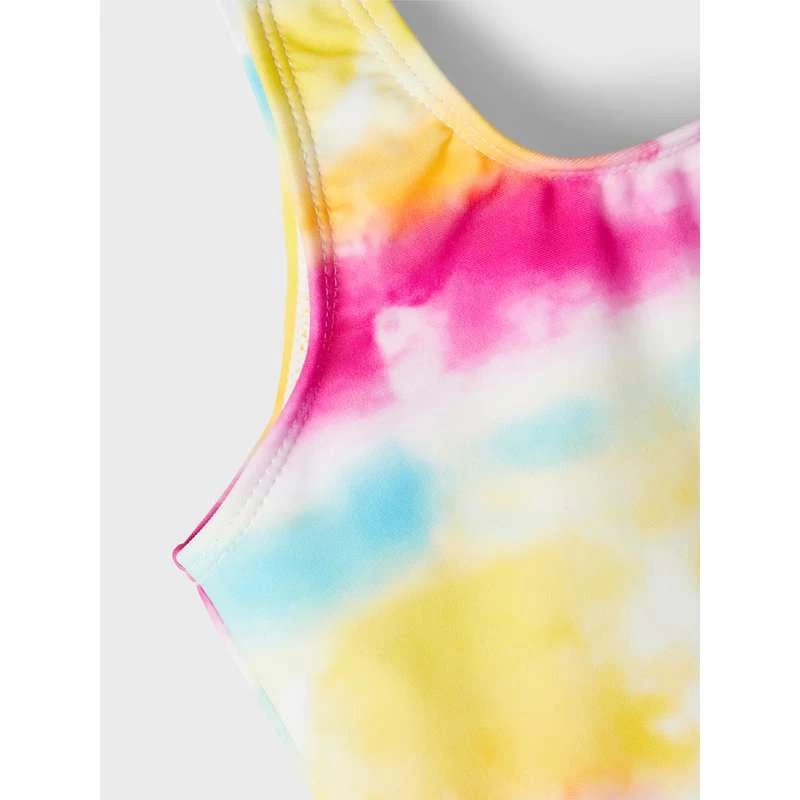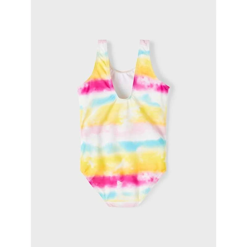 Maillot de bain une pièce avec imprimé licorne, bretelles droites et petit volant sur le côté.