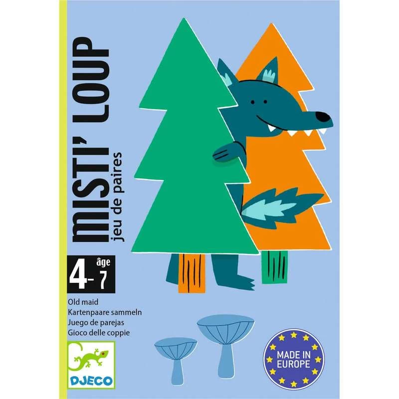 Le jeu « Misti’Loup » de Djeco est une version revisitée du célèbre jeu du Mistigri, adaptée pour les jeunes enfants dès 4 ans.