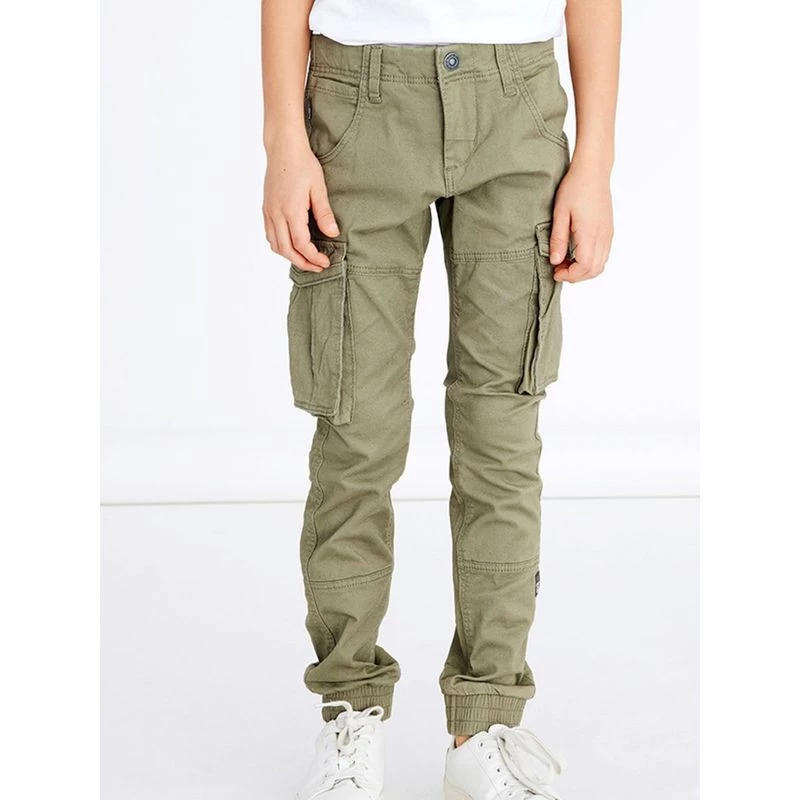 Les poches fonctionnelles et les badges gris confèrent au pantalon une ambiance street tendance parfaite pour les enfants stylés.