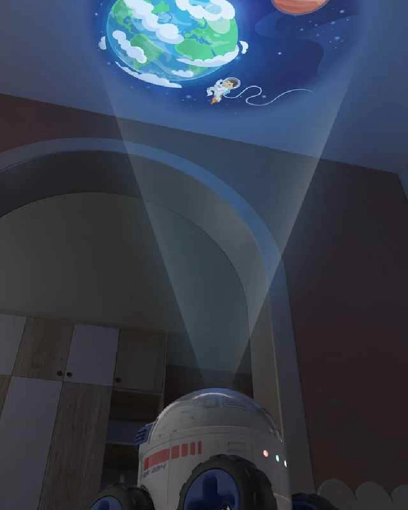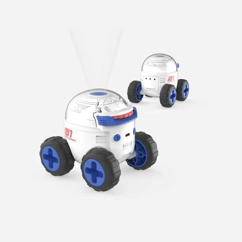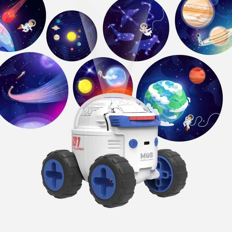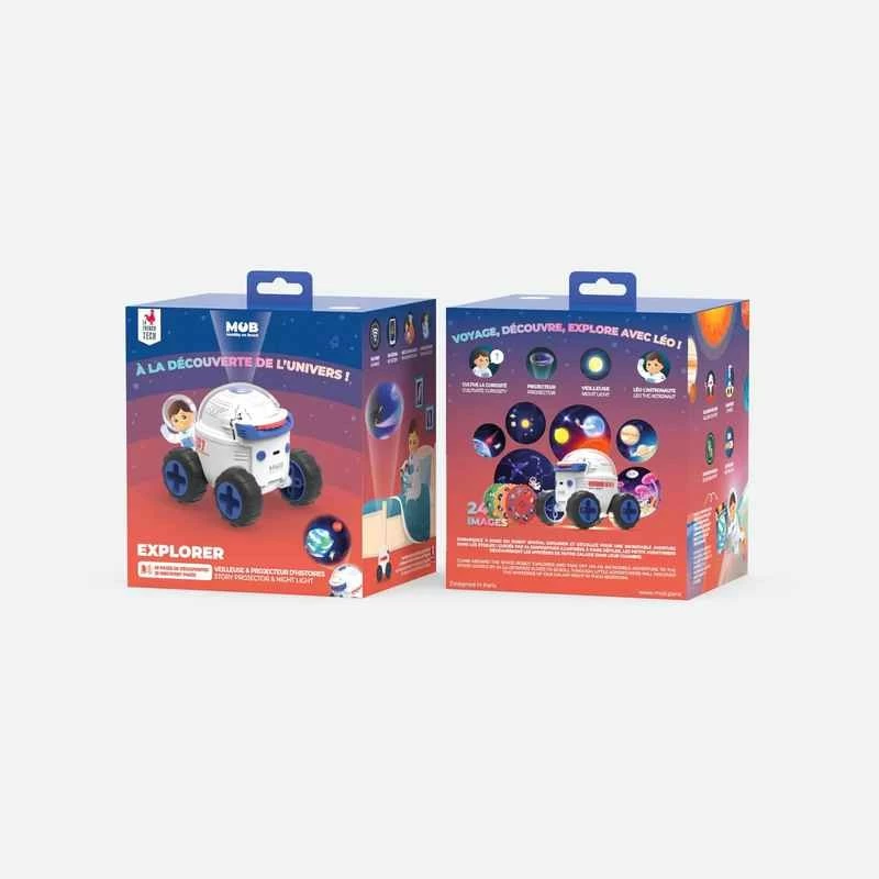 Votre enfant partira à la découverte de l’espace et de ses mystères munis de son rover EXPLORER, nouveau projecteur lumineux composé de 24 diapositives illustrées, retraçant les principaux éléments de notre univers.