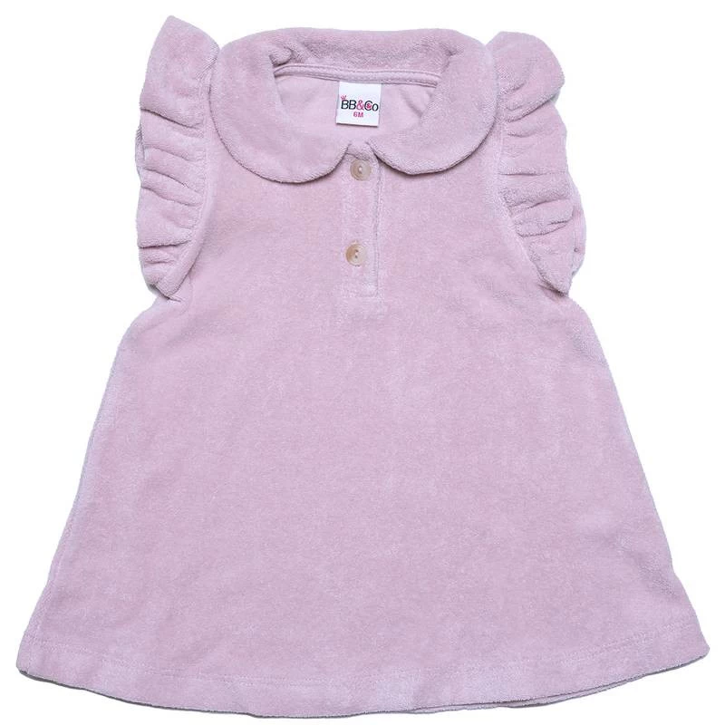 Robe évasée, 100% coton éponge. Matière éponge pour un maximum de confort. Les détails du col claudine et des manches volantées lui donne un côté élégant.