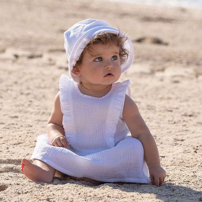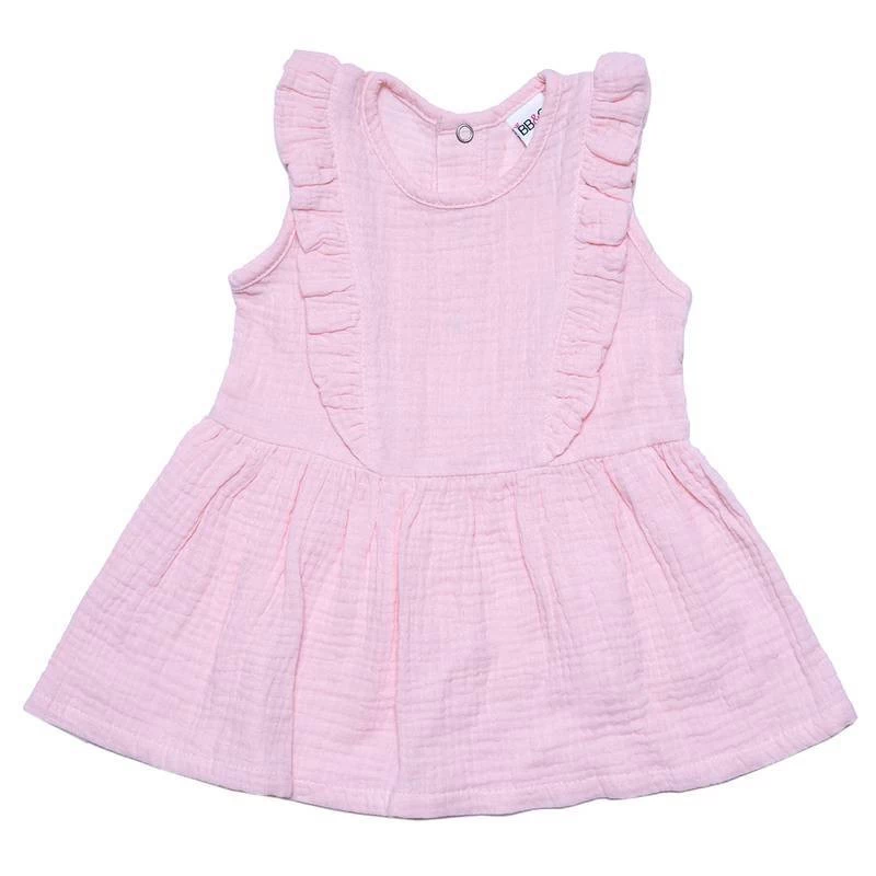 Robe sans manches, 100% gaze de coton. Volantée sur le devant pour un style chic et élégant.
