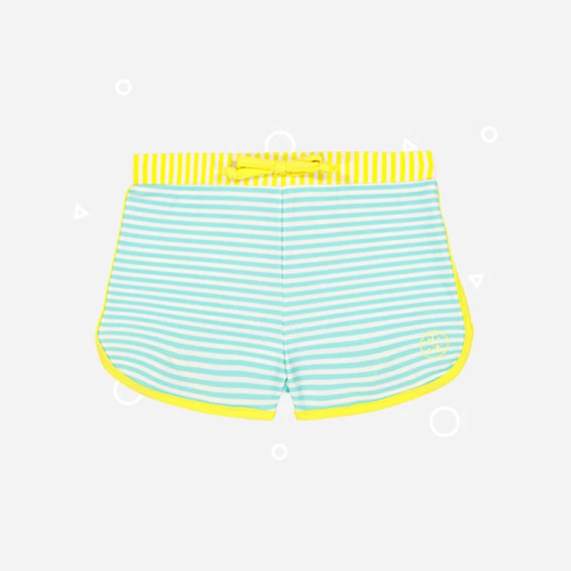 Labelisé Oeko-Tex et conçu en matériaux Anti-UV non chimiques le short Screech protège tout en douceur la peau fragile des tout-petits (sans troubler les poissons).